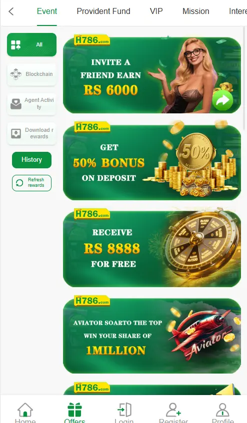 A new user is given a welcome bonus in his or her first deposit. get good bonuses and Rewards are given to regular players on a daily basis cashback deals and special promotions. Invite bonuses are used to enable the users to get a referral bonus.